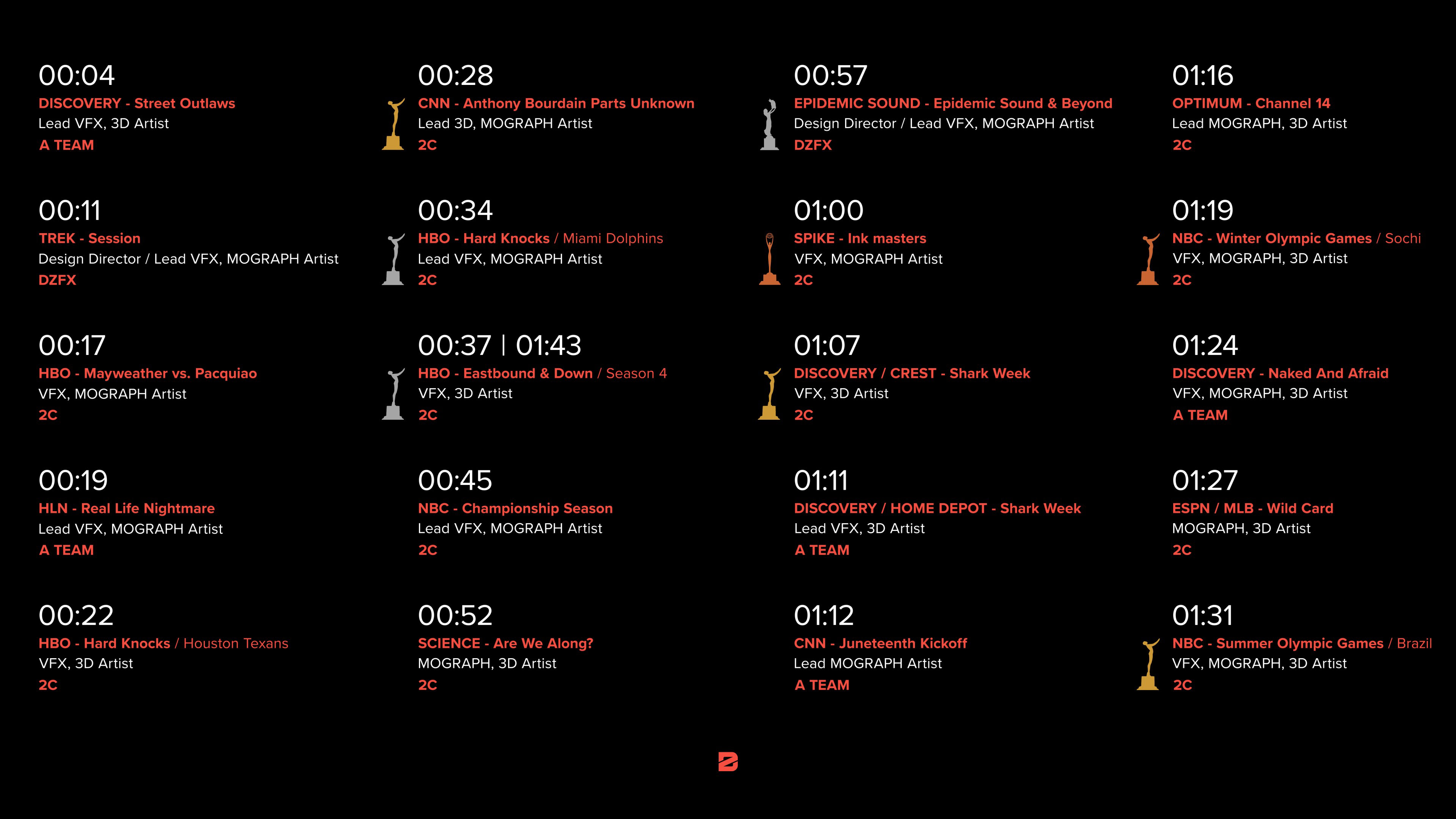 I'm proud to present my VFX / Motion Graphics / 3D demo reel, showcasing some of my favorite projects that I've had the pleasure of working on throughout my career.